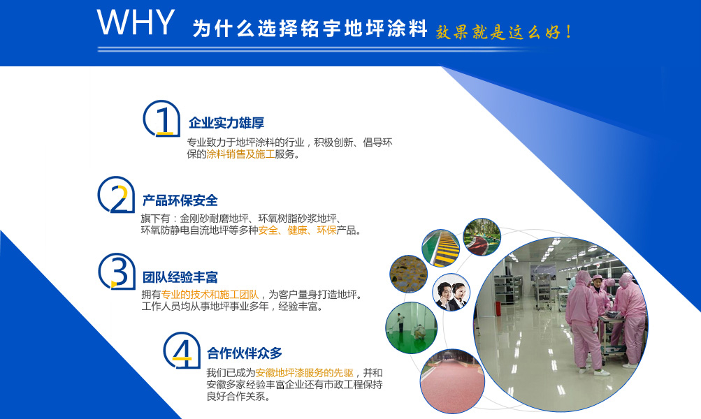 安徽銘宇建材科技有限公司是一家致力于地坪涂料的行業(yè),旗下有金剛砂耐磨地坪,環(huán)氧樹脂砂漿地坪,環(huán)氧防靜電自流地坪,停車場防滑地坪,混凝土密封固化劑和丙烯酸球場,無震動止滑車道、塑膠跑道、工廠地板漆等工程施工服務。 憑借本身的技術能力和研發(fā)條件,加上多年對環(huán)氧地坪和耐磨硬化地坪等各類工業(yè)地坪的涂裝、施工的實踐經驗、技術己處于國內專業(yè)水平,經檢測機構檢驗符合相應的技術標準。同時安徽銘宇建材科技有限公司還組建了經驗豐富的工程技術隊伍以及工程施工隊伍、簡歷了完善的售后施工服務體系,滿足用戶的需要。 安徽銘宇建材科技有限公司是一家積極創(chuàng)新、倡導環(huán)保的涂料銷售及施工服務的廠家,安徽銘宇建材科技有限...